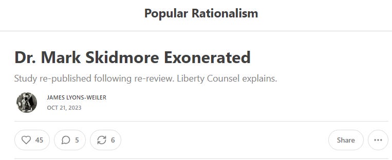 Here’s an article recapping the whole thing by James Lyons-Weiler: Dr. Mark Skidmore Exonerated
